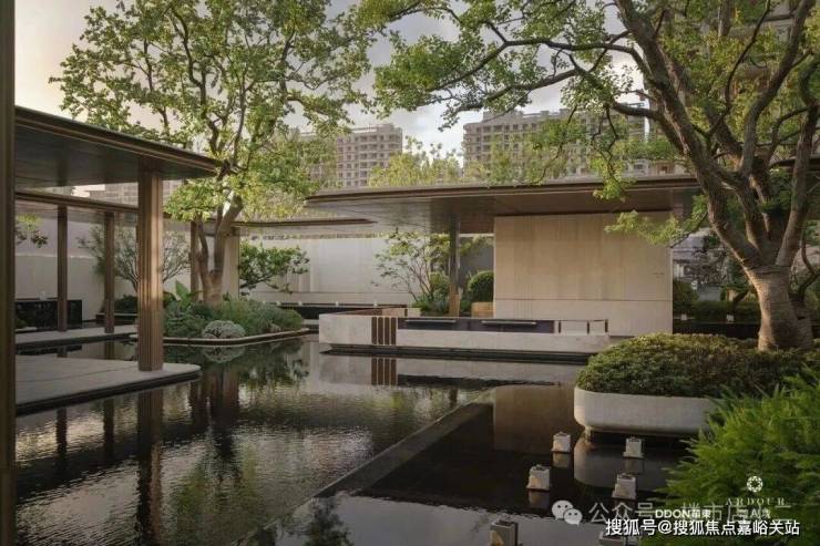 社区的归家体验设计独具匠心。项目打造了 “四重酒店式归家” 动线:约70米超尺度门庭、星级礼品大堂、浮岛水庭、入户单元门头。每一步都充满仪式感,营造出酒店般的归家体验。