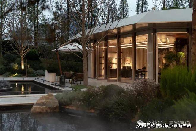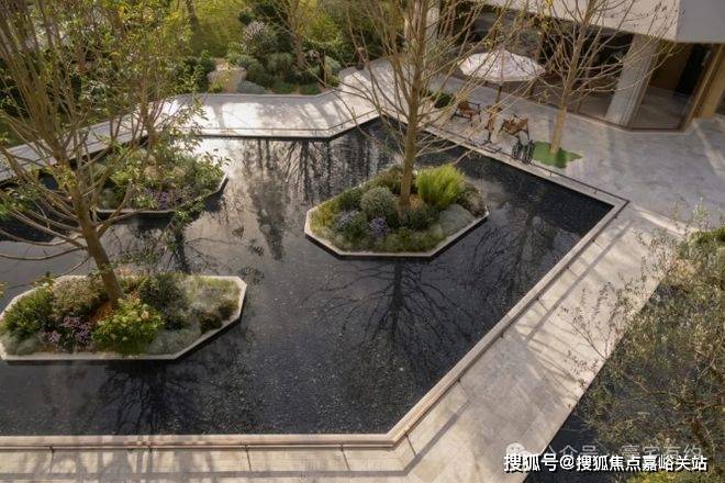 三层归家动线 :从地面景观层到架空层,再到入户层,穿越绿植、光影与水景,步步进入私域。