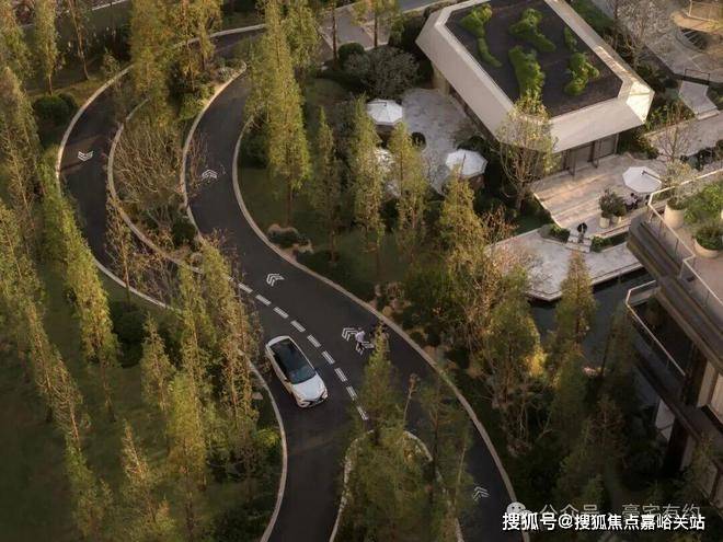 这条森径本身,即是一个非常规的设计:让出极大面积,只为营造抵达前的情绪转换。项目意图打造一种带有欧陆风情的林径驾驶体验,呼应时髦的“车聚”派对,将俱乐部式生活理念融于其中,与其他场景共同构成完整的生活畅想。