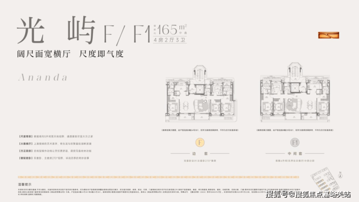 建面约 145㎡的四房两厅两卫户型,作为高层的旗舰产品,以大平层的设计理念,打造了终极改善的居住体验。户型采用四开间朝南设计,整体南向面宽超 14 米,270° 环幕视野,搭配大面积落地窗,最大化引入采光与景观。LDKG 一体化巨幅横厅面宽超 7 米,可灵活打造茶室、儿童游乐区、家庭影院等多元空间,无论是家庭日常居住,还是高端商务宴请,都能完美适配。双主卧套房设计,老人房与主卧分区布局,兼顾了不同代际的居住习惯与私密性,中西双厨的设计,既满足了中式烹饪的油烟隔离需求,又能适配西式简餐、家庭烘焙等多元场景,南北双阳台设计,将家政功能与观景功能完全分离,将居住的舒适度与尊崇感拉满。