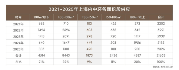 当前上海改善型市场正面临一个尴尬的困局:大多"高端"新盘却在舒适度上做出妥协。自2021年以来,上海内中环新盘呈现出明显的"功能主义"倾向,受制于70/90刚需小户型配比要求,而130-150㎡改善型产品仅占9%供应量,其中约70%又被设计为紧凑四房,以牺牲空间舒适度换取功能性。