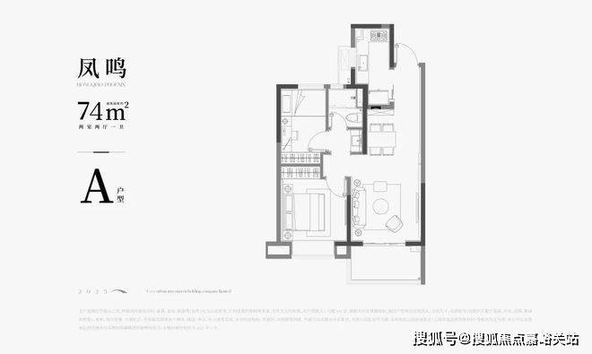 A户型 | 建面约74㎡2房户型图▼