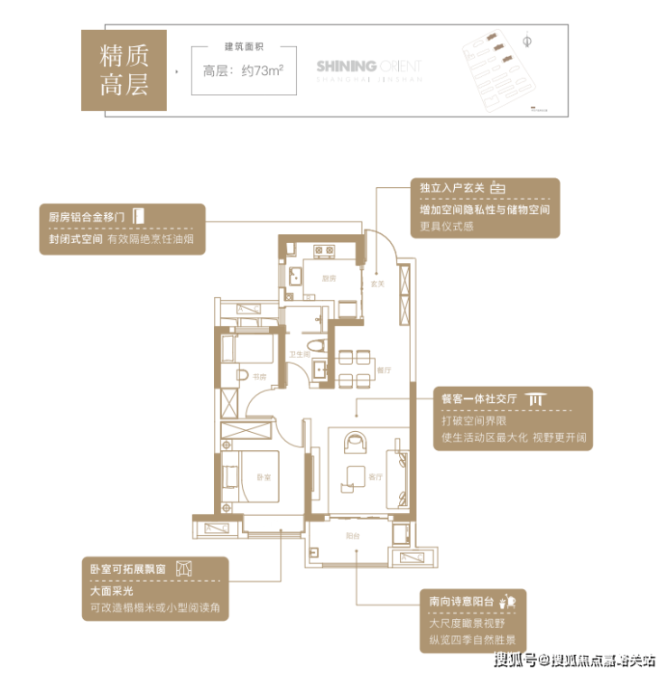 新华·星耀东方户型跨度很大, 最小有73两房、85平的两房,200万就能实现上海置业,部分在莘庄、松江工作的客户也可以考虑这里,开车出行比较方便。