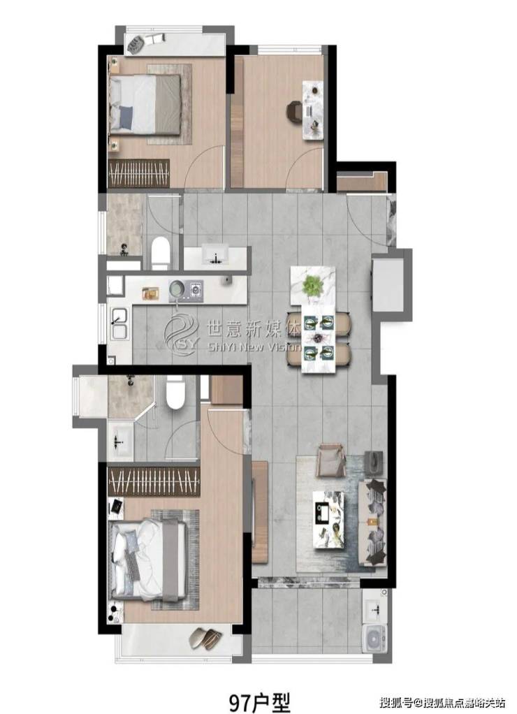 高层建面约97㎡3房2厅2卫