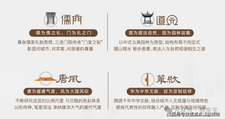 为契合嘉定文化的阔大气象与城市未来的宏观远望,特别以建发房产恢弘见称的「王府中式」产品类型,致敬嘉定的雄浑气魄,[王府中式」产品遵循中式礼序思想,提出“儒门、道园、唐风、华纹”匠造理念。雕琢干道工序,承干年王府规制,呈现“满像繁华”的东方意境。通过当代审美笔触,深入探寻东方构造与意境之美。