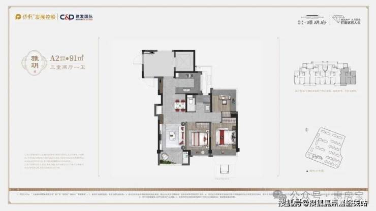 高层:户型建面约 91㎡3 房 2 厅 1 卫;约 103㎡3 房 2 厅 2 卫;约 122㎡4 房 2 厅 2 卫。