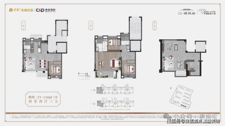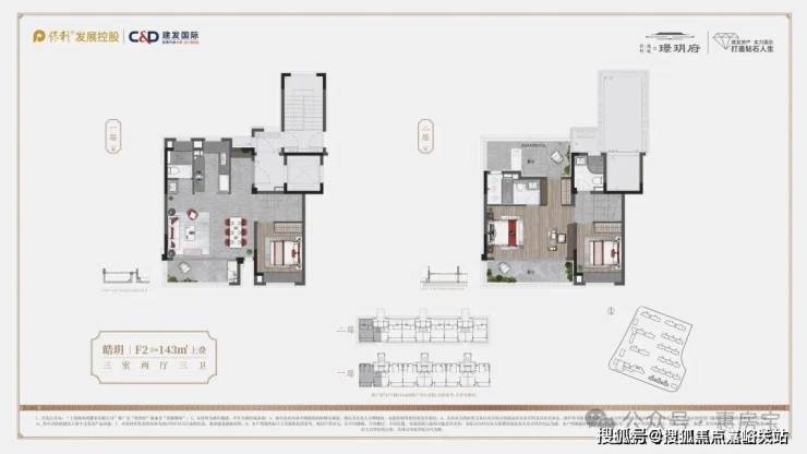 叠拼:约 143㎡上叠 3+1 房 2 厅 3 卫;约 143㎡中叠 5 房 2 厅 2 卫;160㎡上叠 4 房 2 厅 3 卫。