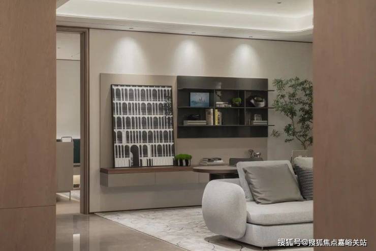 比起中规中矩的直线,弧形施工工艺更复杂、造价更高,却多了几分灵动轻盈!这种弧形的元素不只是在样板间里,在售楼处也能经常看到,比如电梯厅。