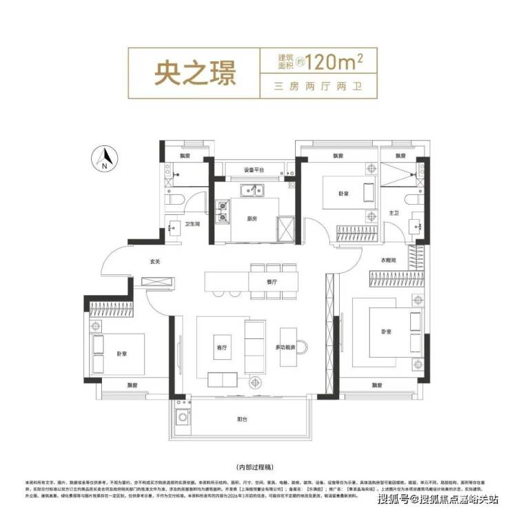 约11.3米南向三开间 ,拥享阳光, 约5米的横厅联动餐厅 ,形成“客餐一体”的互动空间,让不足百平的三房也能拥有大尺度的视觉享受。