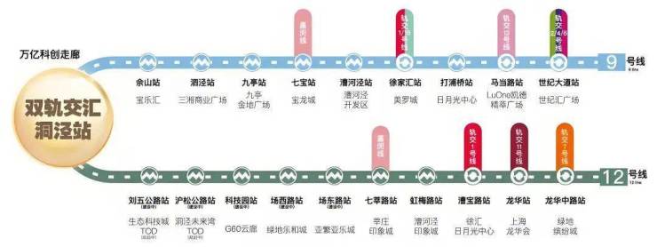 项目距离地铁9号线洞泾站直线仅约400米!12号线(在建)洞泾站也仅约500米,是真正意义上的“双轨交正地铁盘”!