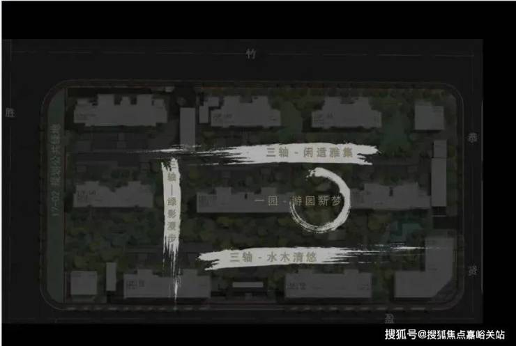 首推地块以南北一轴+东西两轴及核心景观区,构成 “一园三轴”的景观结构,移步异景,如诗如画。