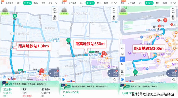 不同的距离步行到地铁站的差距有多少呢?来看百度地图的测距: