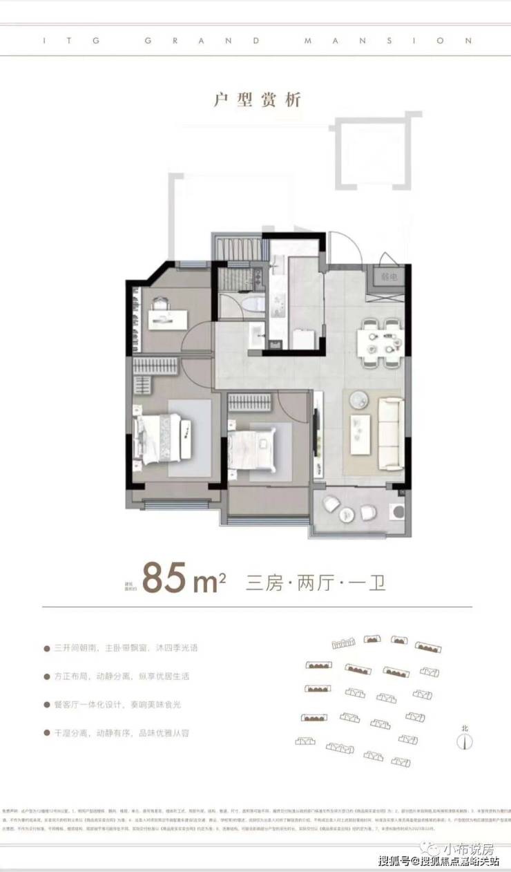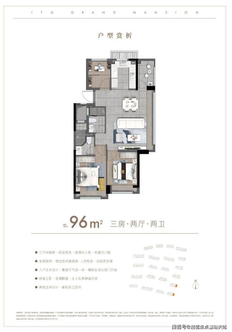 户型方面: 约85-96㎡的全三房设计 ,每一款户型都是会传递出国贸的产品观。南北通透,布局考究,动静分离。