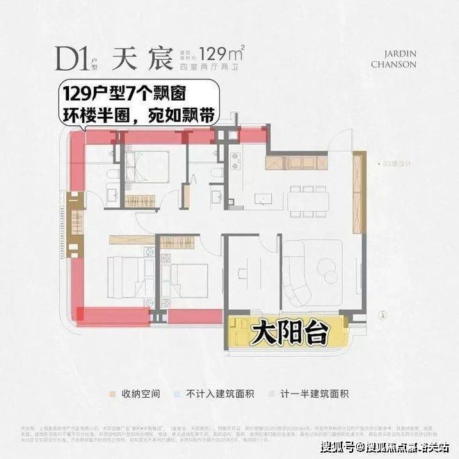 “不是飘窗,更像是飘带。”采光周长惊人,以129㎡户型为例,7个飘窗,环楼超半圈,宛若飘带。