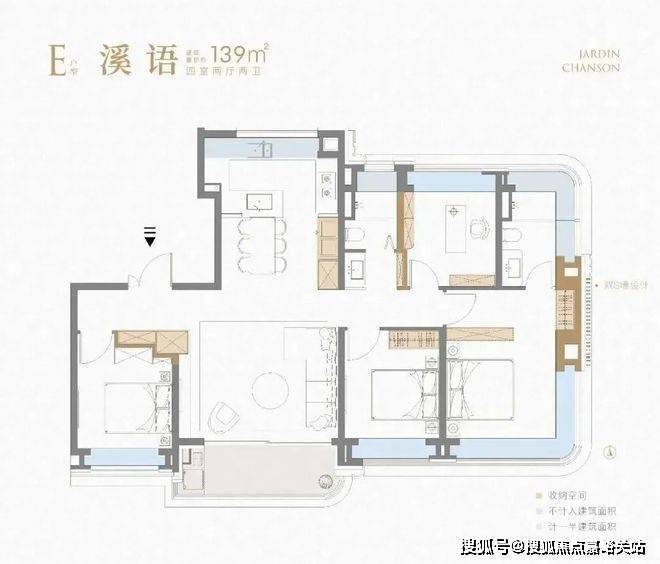 约107㎡边户全屋设计了5个飘窗,而139㎡户型的飘窗总体线长约23m,还不算阳台。飘窗面积折合下来,就是约15平米的赠送面积,价值小100万!