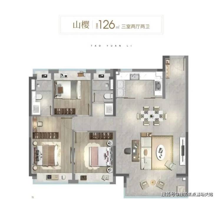✔建面约106㎡做到了真三房,客厅面宽达到约3.45米,开放式可视厨房设计,搭配南向大面积阳台,打造开阔的一体化家庭公共活动空间,整体居住体验明亮开阔。