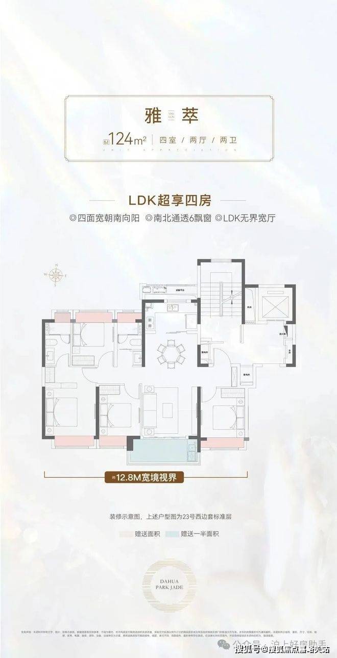 建面约124㎡的4房2卫户型,通常来说是紧凑型的户型。