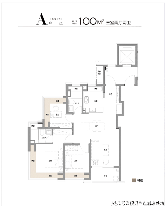 100㎡户型,双270°飘窗设计(南向主卧+北向书房),南次卧、厨房、双卫飘窗,厨房烟道外移,飘窗配置抽屉,极致空间利用率 保利外滩启PARK77售楼处电话:400-1183-708⭐⭐