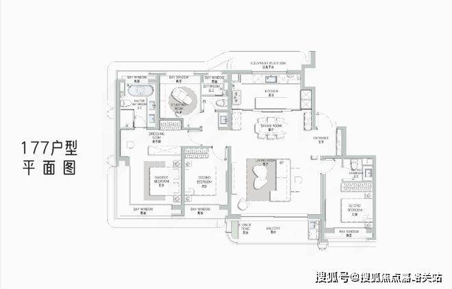177㎡艺术贵雅奢邸是海上·清和玺压轴力作,延续玺系经典的设计理念和思路,阔朗的四面大开间设计,客厅做到了大横厅设计,延续了曲面流体的阳台,并赠送了独具特色的阳台迷你花园。