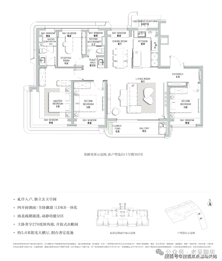 3、南向四开间,面宽约15.5m,独立餐客厅,南北通透