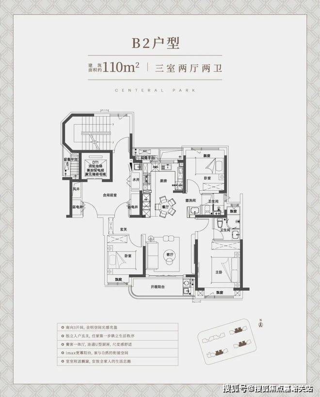 亮点一:经典四开间朝南+大横厅设计,超绝采光户型!