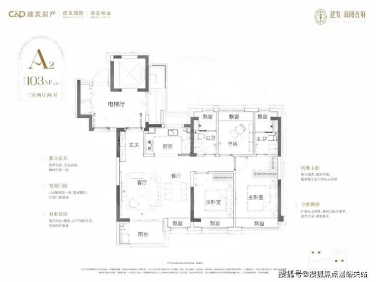 建面约103㎡3房2卫户型图:☑️☑️海阅首府售楼处电话:400-1183-605☑️☑️