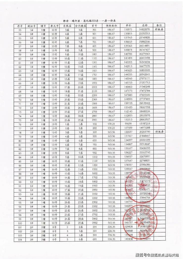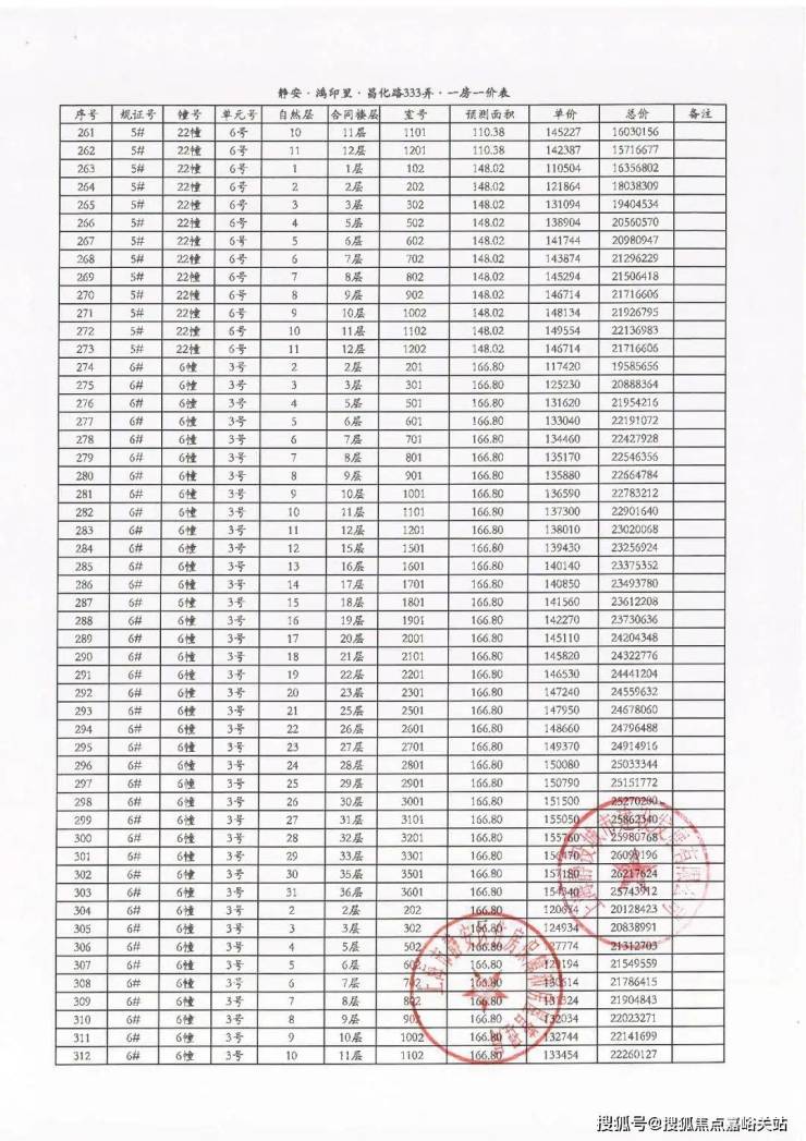 附6套房源一房一价表