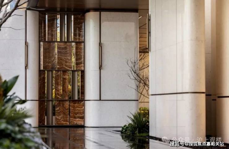 不仅是金钱上的奢侈,更是时间广度的奢侈。比如,整个下沉式庭院材料选用 土耳其进口老虎玉, 由匠人耗时60天手工打磨定制,可见海上·清和玺对业主归家仪式感设计的用心与苛求。海派光厅之外的归家迎宾树木更是由设计师 辗转多个城市才寻到的、树龄超60年的福木“紫薇”。