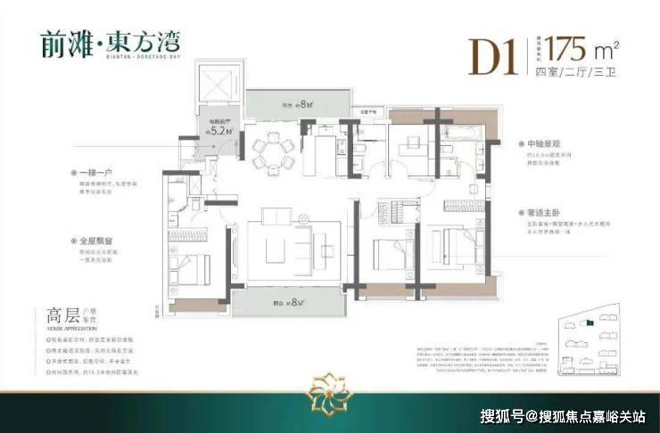 如果有进阶改善置业需求的客户,可以选择建面约140/175㎡4房2厅3卫!