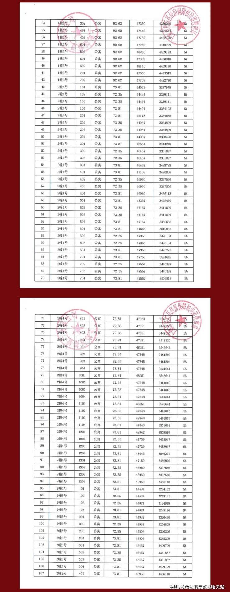 项目一房一价表