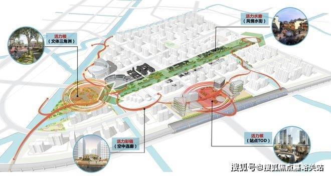作为城市发展商角色的中交城投,正在为华新未来的发展谋划一盘“大棋”,打造以示范线-徐乐北路站TOD为主导,通过以历史文脉、科创体验及绿色生态为核心的复合站前体验区;打造科创TOD街区,融合了东方水镇,生态与文化的交融,形成“街、桥、寺”的水镇空间。