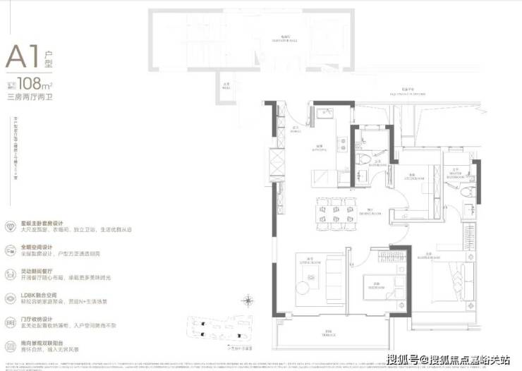 108㎡的入门级三房,起步门槛相比润府提高不少。