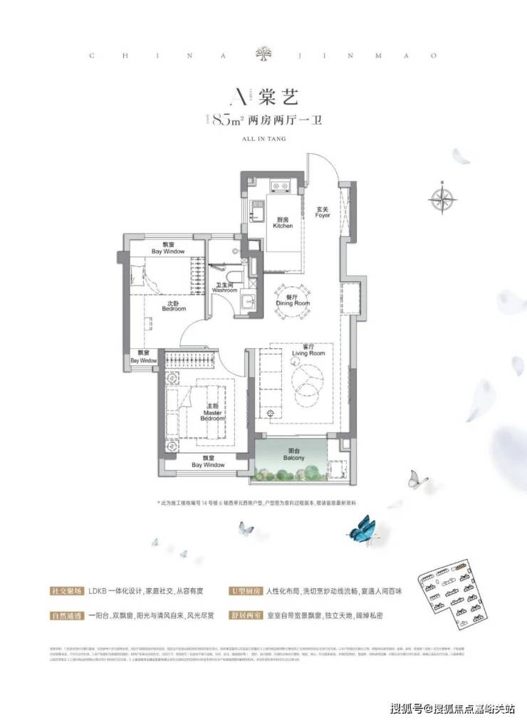建面约105㎡3房2厅2卫,做到了三开间朝南+4个飘窗+双面阳台系统+主卧套房设计+270°转角飘窗,该户型的居住体验、舒适度、尺度感,是同级别产品所无法比拟的。