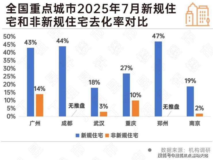 据CRIC监测数据,广州、武汉、重庆、南京等新规住宅去化率超非新规住宅10个百分点之上,成都、郑州新规住宅平均去化率均在四成以上。