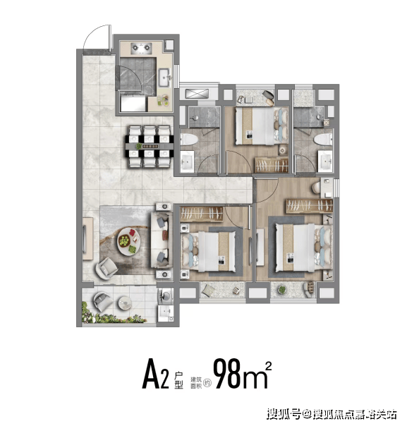 建面约124m²四房,市面常见的四房普遍要135平,这个约124平米户型功能性拉满,且控制了总价,给予更多小伙伴一步到位的机会。