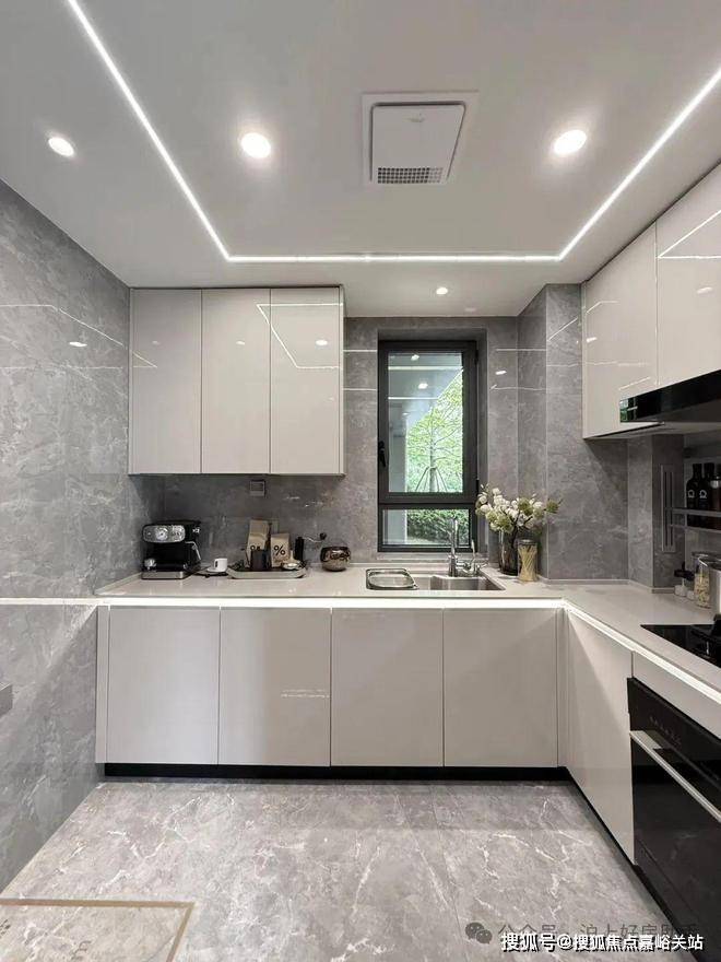 橱柜收纳系统:特别预置洗碗机点位、柜内下拉篮式设计、不锈钢挡油板、柜下操作灯、烹饪全流程功能动线一体化设计;