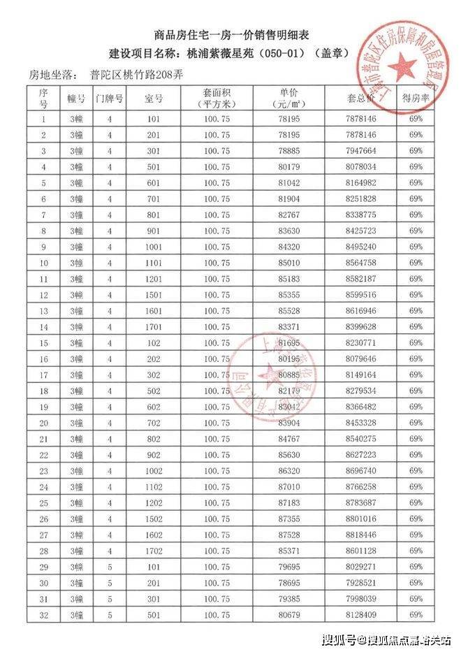 项目一房一价表