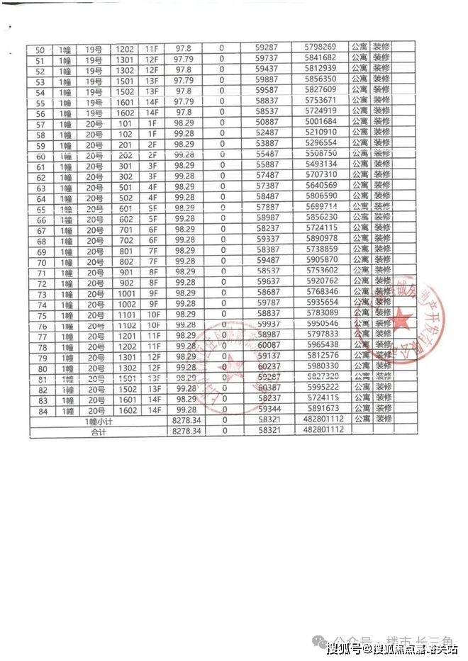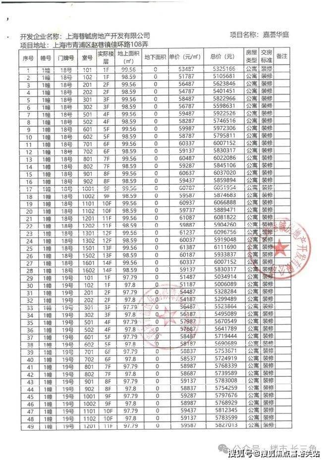 一房一价表: