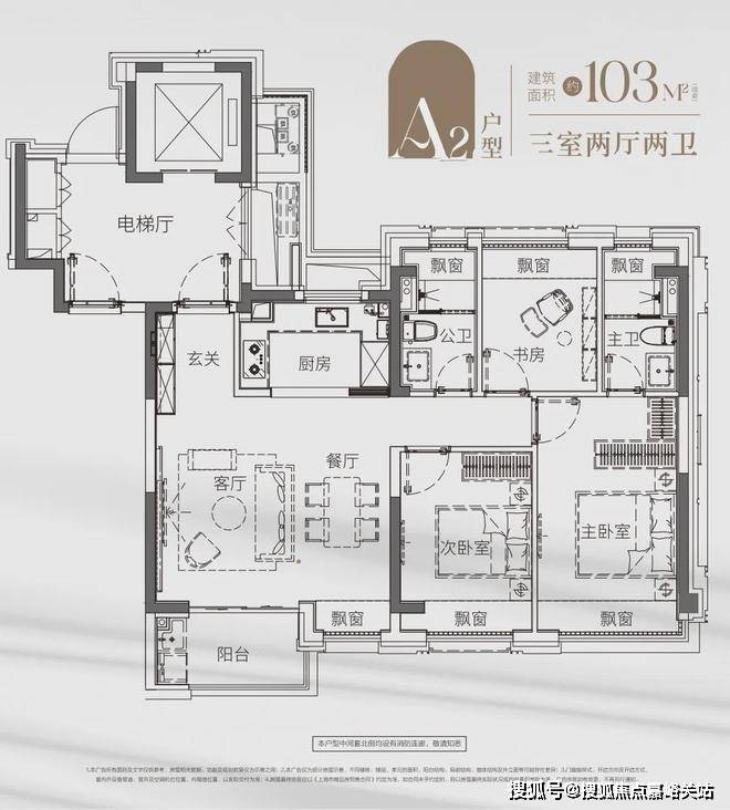 这套 建面约103㎡动静分离户型打破常规, 兼具三个房间和南向超阔面宽的横厅,以此承载从二人世界到三代同堂的全生命周期需求。