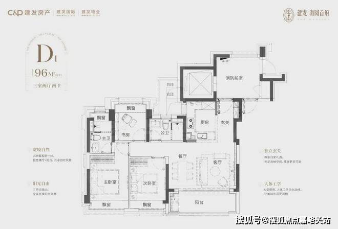 建面约96㎡3房2厅2卫