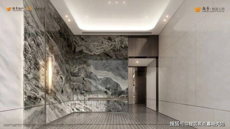 为了营造归家的仪式感,越秀杨浦天玥打造了宽约35米、高约5.1米酒店式奢阔门头,引入了价值不斐的名贵黑松。酒店式入户大堂的营造,精选雪山飞狐奢石,高山流水奢石、星白奢石等奢材,将品质感拉满。同时,酒店式入户大堂溯源海派经典,融入古铜色金属格栅、海派拼花(首层和地下大堂)、海派复古压花玻璃等海派表达,让人文感满满。