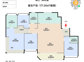 177㎡四房两厅三卫 :大横厅设计,面宽超 7 米,连通景观阳台,兼具社交与观景功能;双套房布局,主卧带独立卫浴、衣帽间与飘窗,次卧自带独立卫浴,保障家人私密;多功能书房可改造为儿童娱乐室或茶室,适配多代同堂或高端社交需求。