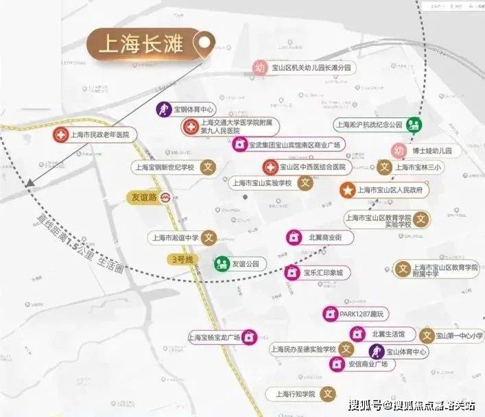 上海长滩的区位优势不仅在于滨江,更在于其“双枢纽”辐射下的高效通勤网络。 轨交+高铁,畅达全城,项目距离轨交3号线友谊路站仅约1.5公里,2027年通车的宝山高铁北站(距项目约3公里)更将接入沪通铁路,实现长三角1小时经济圈覆盖。