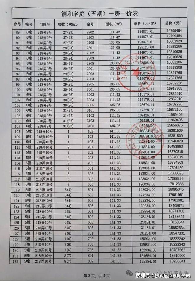 海上清和玺一房一价表