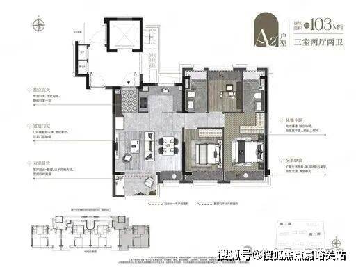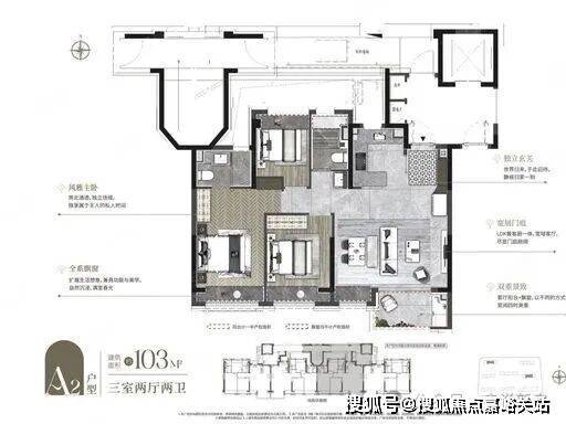 建面约 103㎡ 三房两厅两卫(主力爆款)