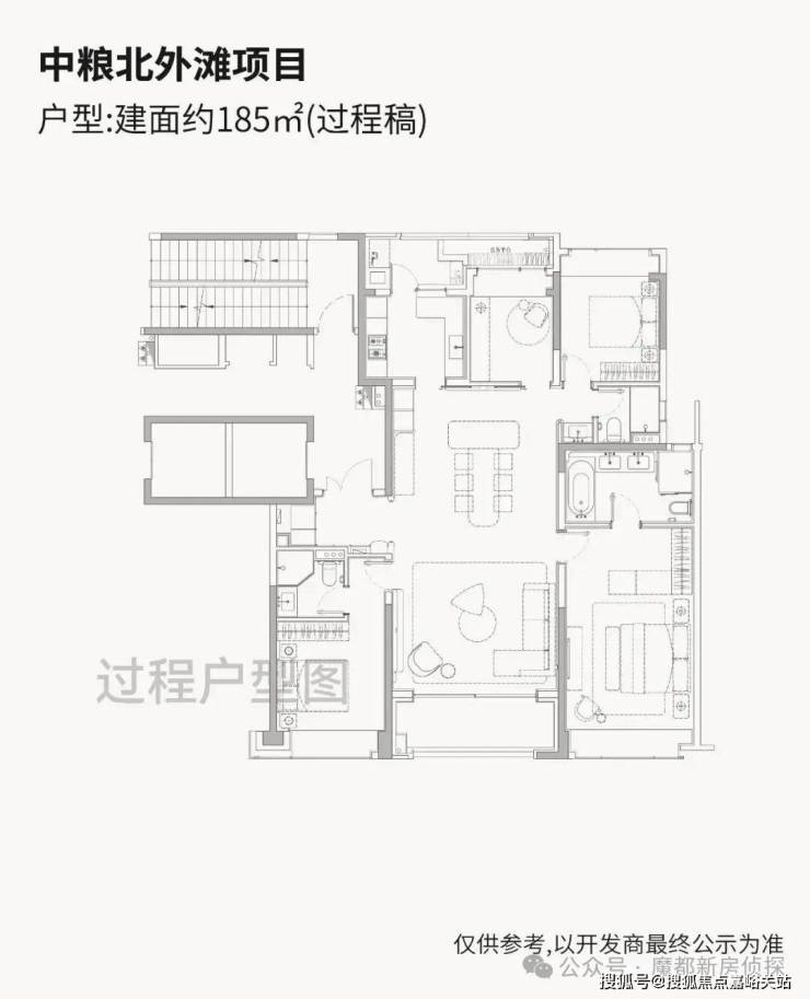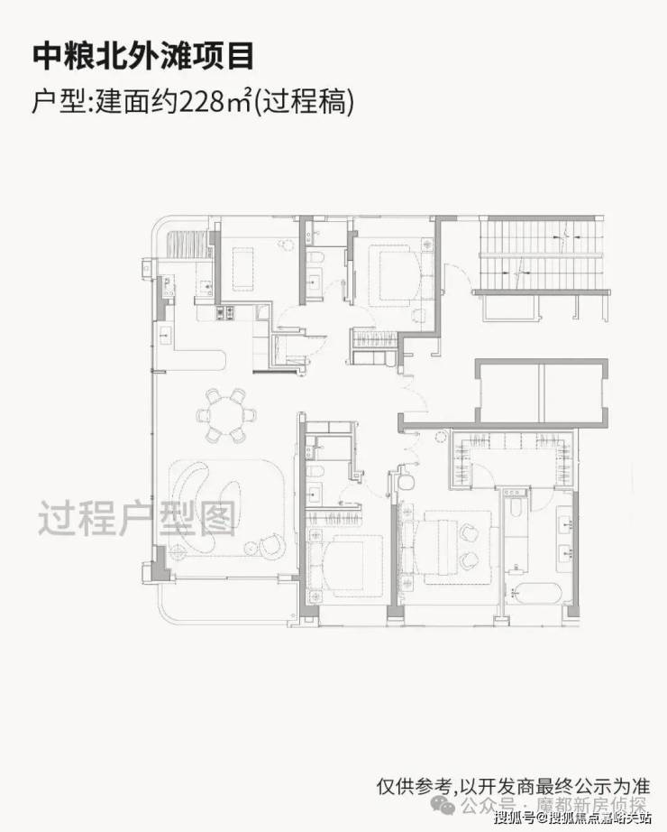 「中粮·北外滩壹号」即将入市的高层户型建面约185-228㎡纯粹4房,尺度感相当奢阔!高层户型均为两梯两户独立电梯厅配置,隐私性与尊崇感拉满!全落地窗设计,270°环幕大边厅户型相当惊艳!超大窗墙比+双套房格局形成多维观景的极致效果!仅90套,珍藏属性拉满!
