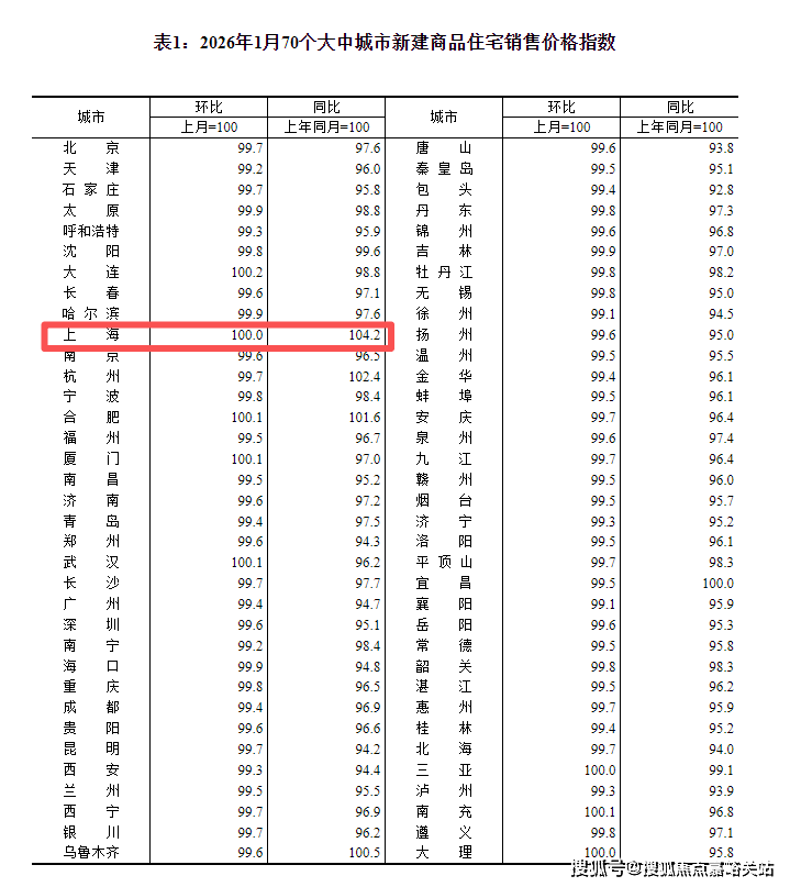 在众多城市中,上海一直是全国新房价格的领头羊,此前价格指数已连续43个月环比上涨。不过,今年1月份,这一势头并未延续,新房价格环比持平。