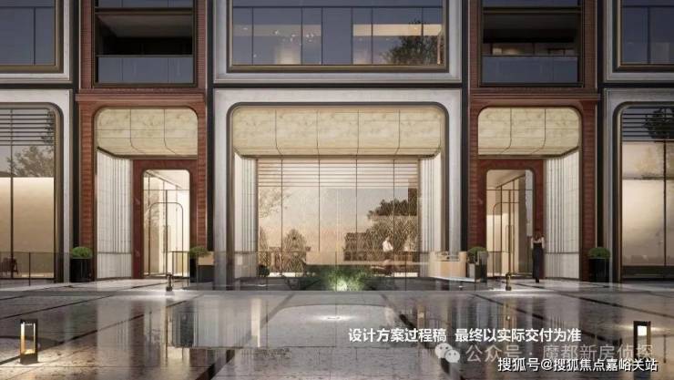 其中高层外立面昭示性十足!采用仿红砖陶板、优美柔和的设计元素、白色石材窗板以及古铜色金属线条设计,实现海派复古与现代建筑美学碰撞的艺术,颜值满分!