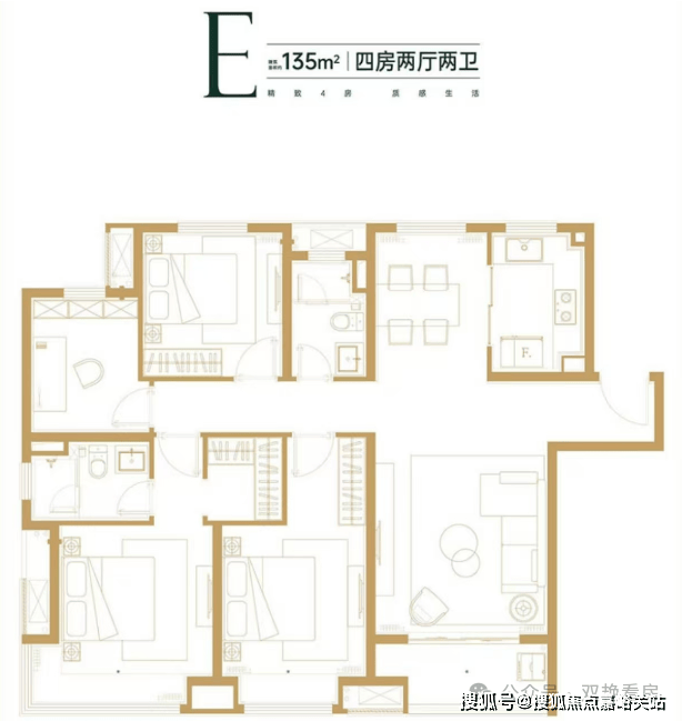 建面约135㎡四房两厅两卫