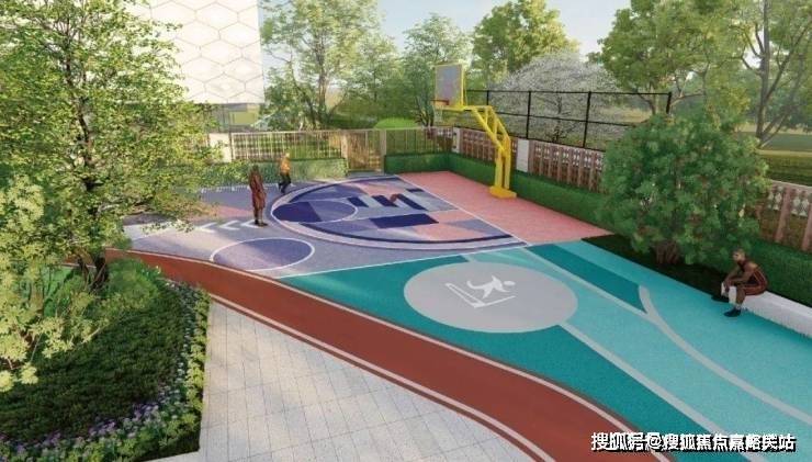项目室外精心铺设约600米AI智能跑环系统、儿童乐园、乒乓球场、羽毛球场、篮球场、大小广场等运动建身设施。